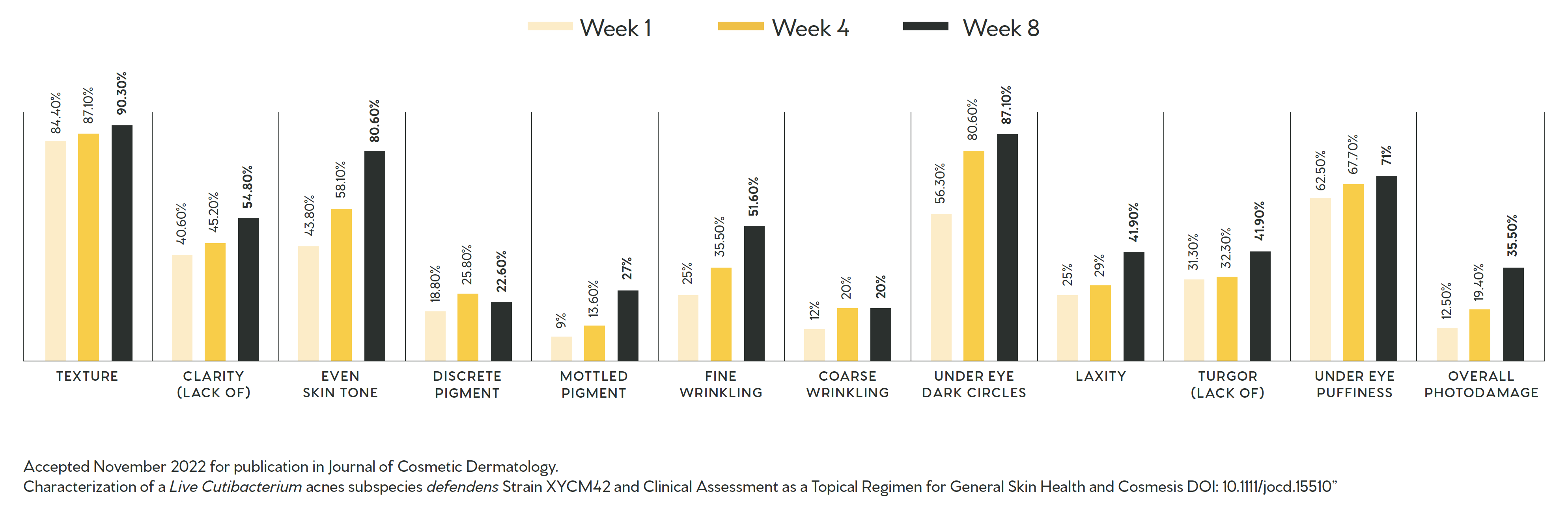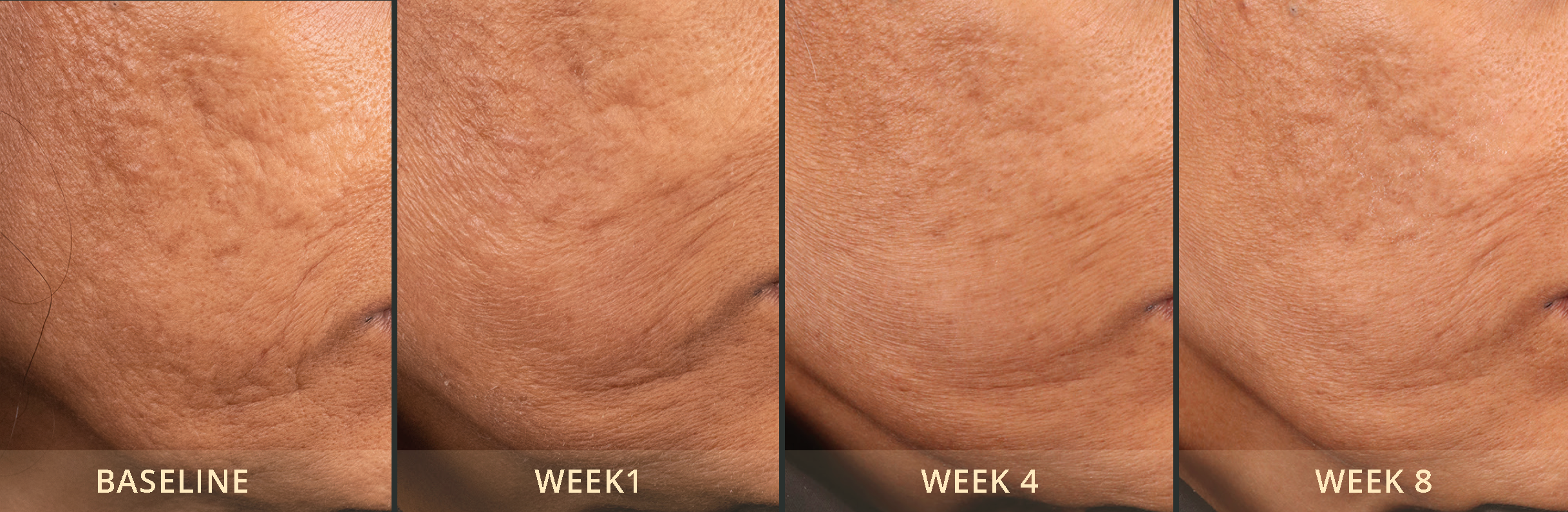 All endpoints measured in the BIOJUVE clinical study showed significant continuous improvement over 8 weeks with results visible in as little as one week. Key results of the study prove that BIOJUVE created significant improvements in the appearance of: